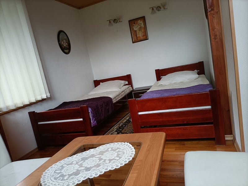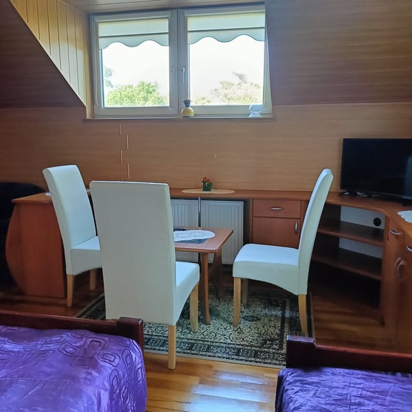 i szumu morskich fal. Wszystkim naszym gościom zapewniamy miły i spokojny wypoczynek. Oferujemy Państwu pokoje 2, 3 i 4 - osobowe z pełnym węzłem sanitarnym oraz apartament.